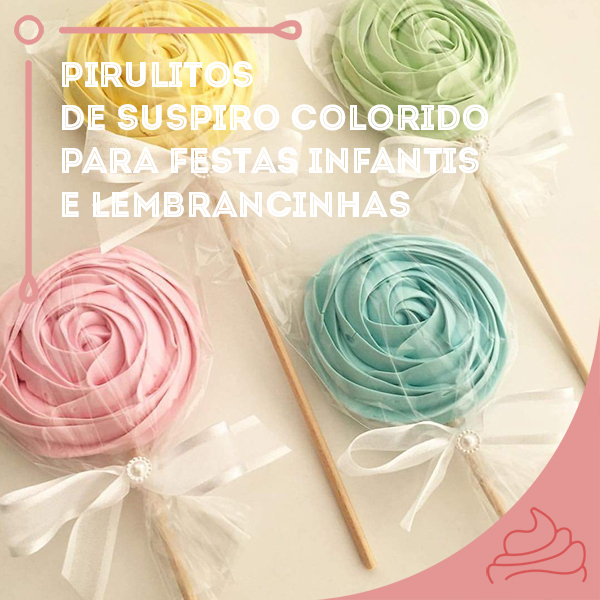 Pirulitos de Suspiro Colorido para Festas Infantis e Lembrancinhas